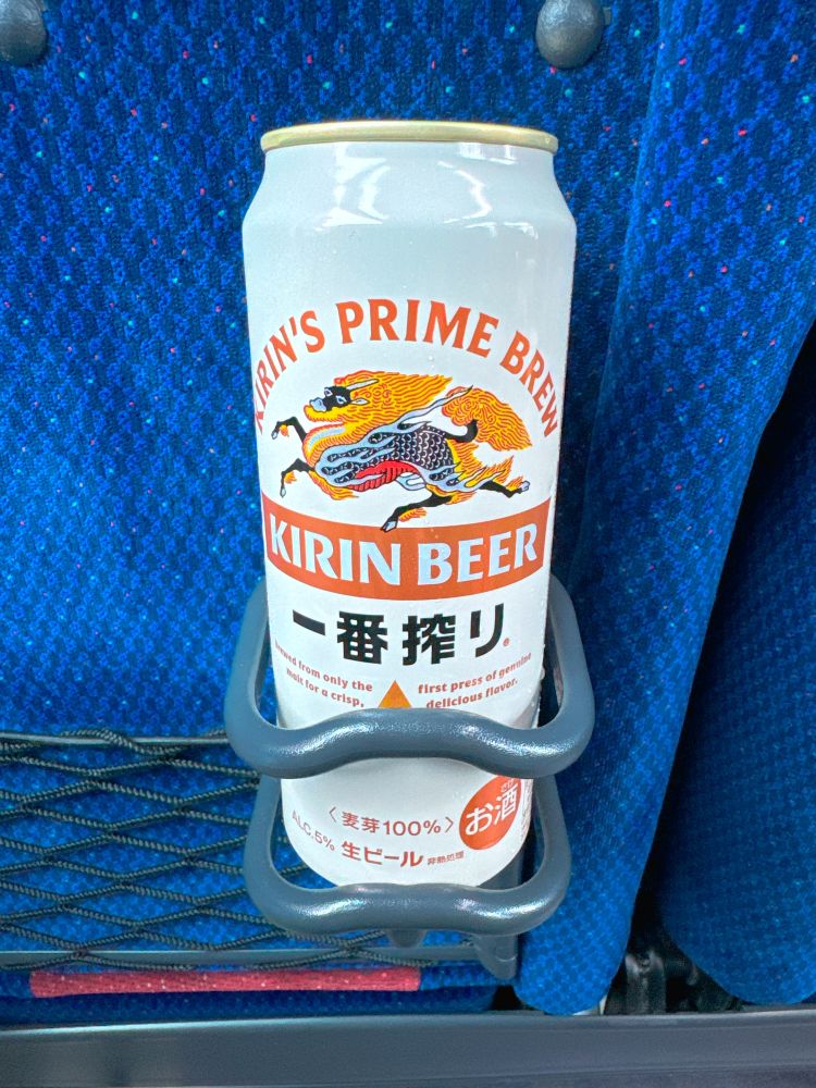 朝、名古屋駅に集合してバスで飲むお酒の買い出し、そしてバスが出発すると同時にプシューと乾杯です。