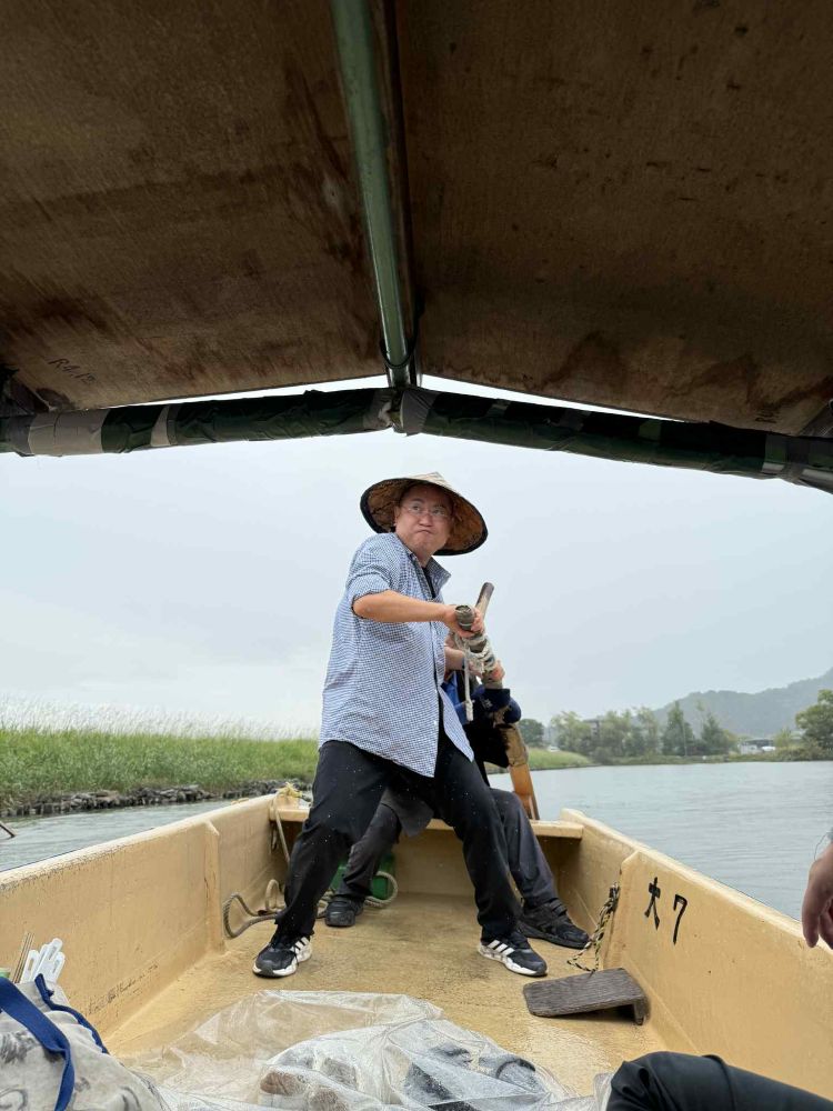 みんながそれぞれ漕ぎましたが、櫓の扱いが上手い人、力強い人、最初から見た目が船頭の人など、個性が楽しかったです。