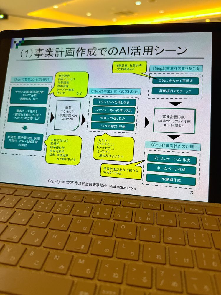 朝一で稲沢商工会議所の「生成AIによる事業計画作成セミナー」でした。午前ですが熱心な受講者に集まっていただきました。
