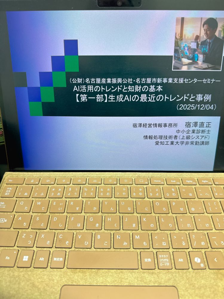 午前中は名古屋市支援センターでの相談、午後からはウィンクあいちで知財マネージャーとのコラボの生成AIセミナーでした。
