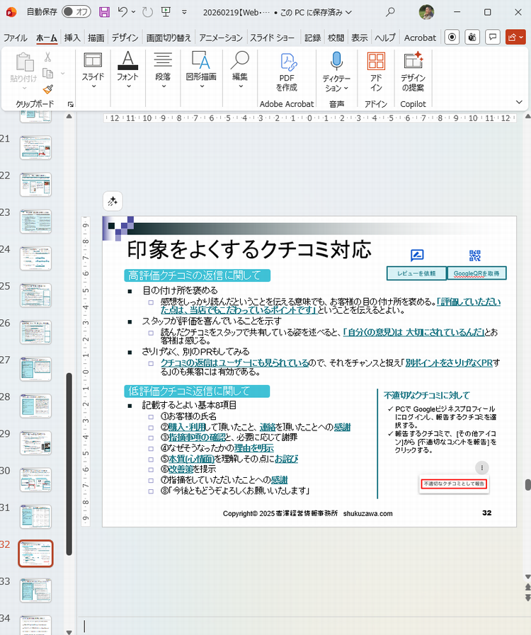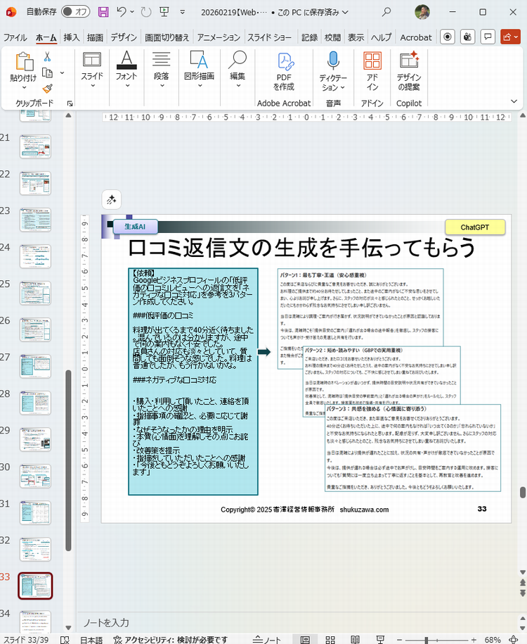 午前中は来週に商工会議所でおこなうSNS活用セミナーの資料の見直しをしていました。