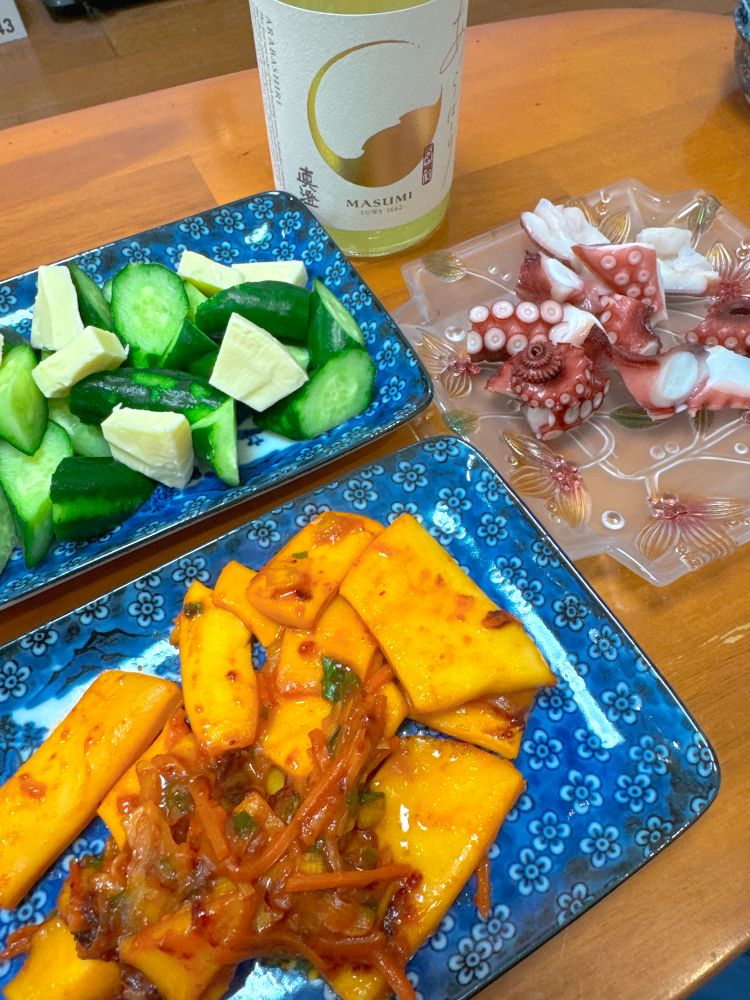 祝日だったので、以前いただいた日本酒「真澄」を開けて、ゆったりとした時間を過ごしていました。