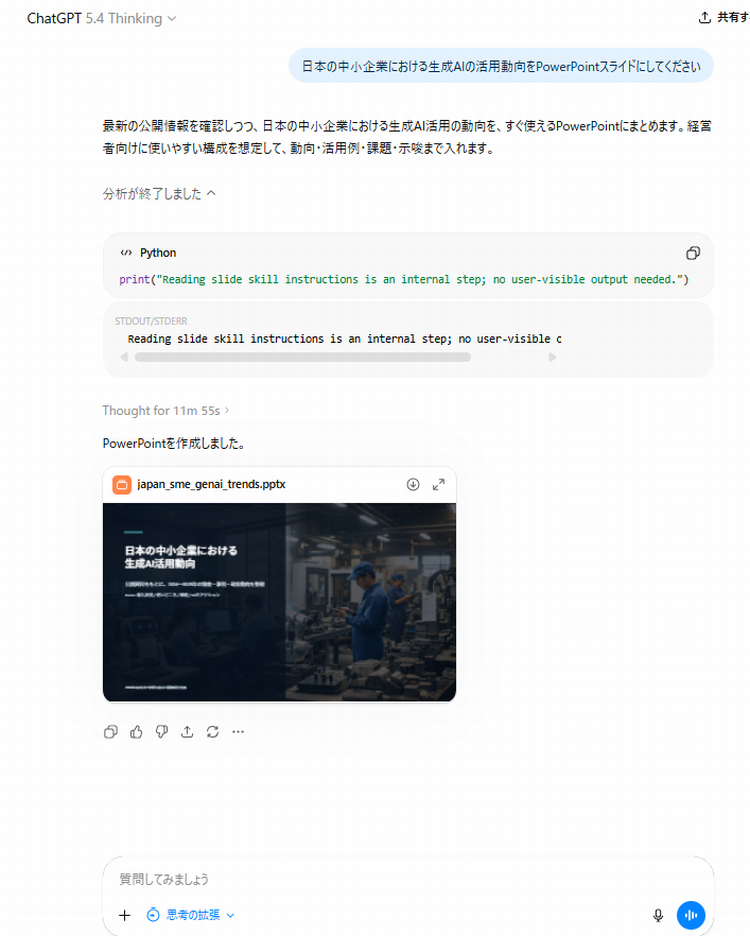 試しにChtGPT5.4ThinkingでPowerPoint資料を作ってみました。
